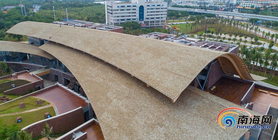 海口市民游客中心,建筑的純木結構屋面約9000平方米,是亞洲最大的純木結構屋面。南海網記者劉洋攝