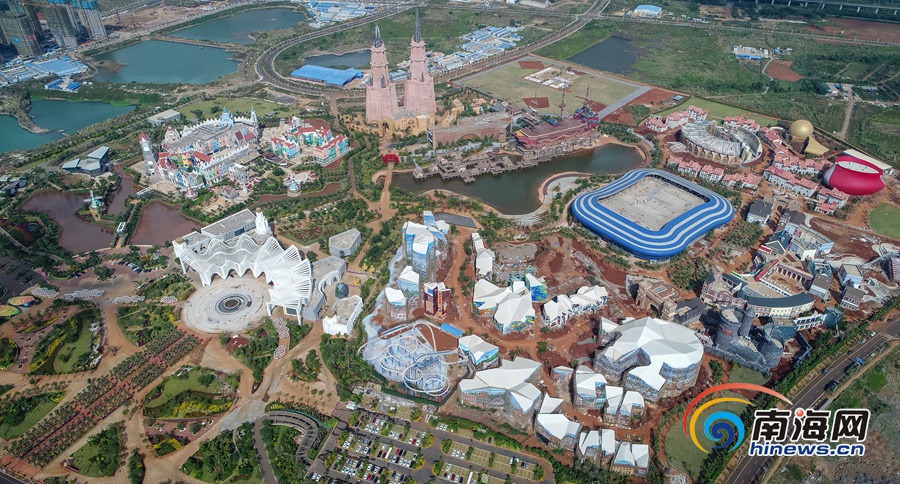 遠遠望去,長影海南“環球100”電影主題樂園像個童話的世界。海報全媒體中心記者袁琛 攝