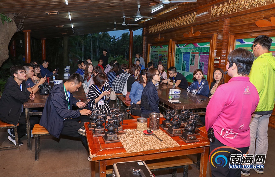 11月25日,“改革開放看海南”2018年全國融媒體海南行采訪團在興隆熱帶植物園品嘗咖啡。南海網記者李昊攝
