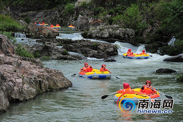 “改革開放看海南”2018年全國融媒體海南行大型采訪活動走進紅峽谷景區(qū),開啟了一場兼具速度與激情的漂流體驗。南海網(wǎng)記者 沙曉峰 攝
