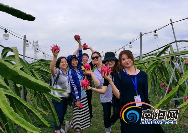11月29日,網(wǎng)媒記者在火龍果基地合影留念。南海網(wǎng)記者沙曉峰 攝