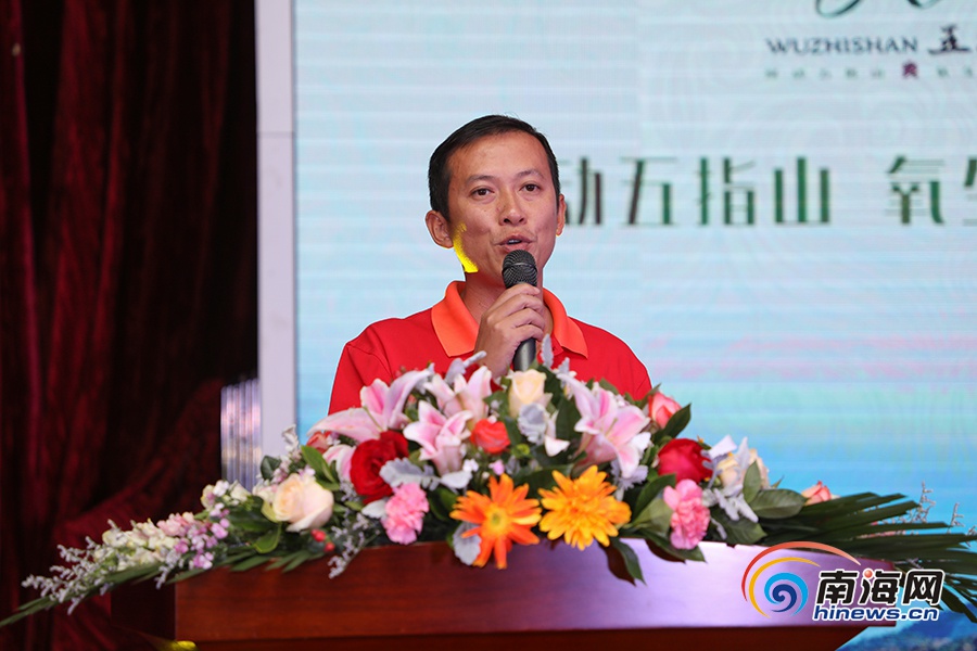五指山紅峽谷副總經理林道偉推介漂流季活動。南海網記者李昊 攝