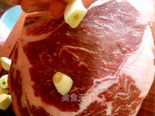 3講大蒜切開,用來(lái)擦拭牛排表面,用于祛除腥味