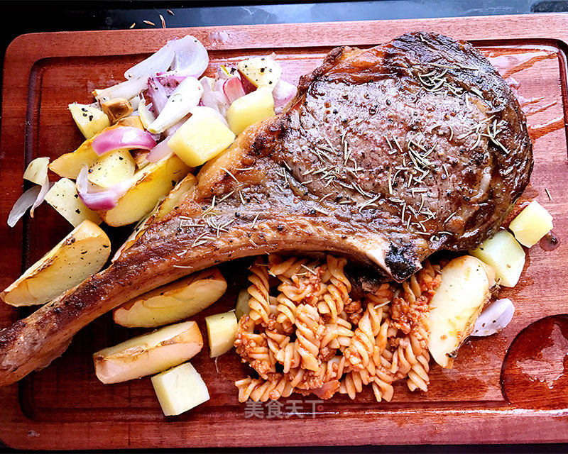 11將牛排從烤盤取出擺盤,撒上百里香,一定要靜置10分鐘,然后就可以開動(dòng)啦!真的非常美味哦,尤其最好吃的在連著骨頭的那個(gè)地方的肉!哈哈!