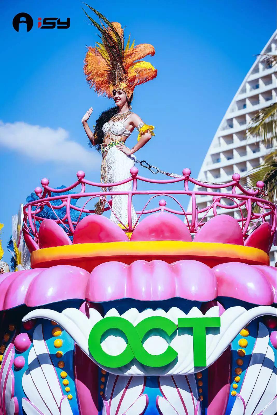 “炫動(dòng)三亞”花車和“絲路情長(zhǎng)”花車,是由海南華僑城文化演藝有限公司特別提供?!办艅?dòng)三亞”彰顯著三亞獨(dú)有的旅游人文特色;“絲路情長(zhǎng)”則代表著三亞所肩負(fù)的作為“一帶一路”重要支點(diǎn)城市的重要責(zé)任。