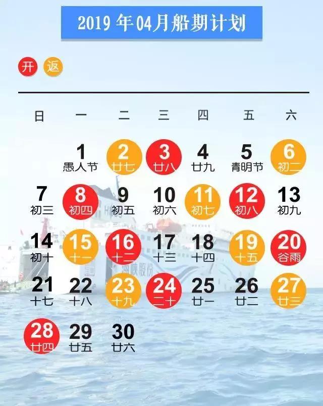 注:標橙色的為出港日期,例如:4月5日出港(三亞—西沙),4月8日抵港(西沙—三亞)