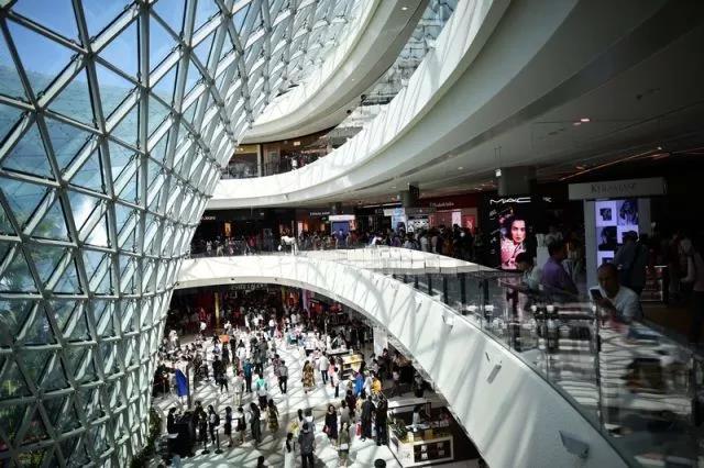 ↑顧客在海南三亞海棠灣免稅店內游覽、購物(2月18日攝)。新華社記者 郭程 攝