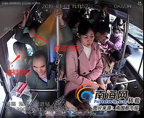 海口一市民乘7路公交車時(shí)遭遇小偷