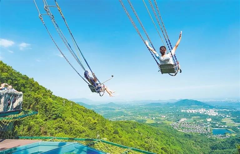 ↑保亭呀諾達(dá)景區(qū),游客在體驗(yàn)“懸崖觀海秋千”項(xiàng)目。海南日?qǐng)?bào)記者 武威 通訊員 胡立前 攝