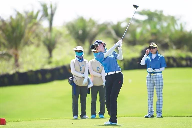 ↑游客在陵水清水灣的高爾夫球場(chǎng)揮桿。海南日?qǐng)?bào)記者 張杰 攝