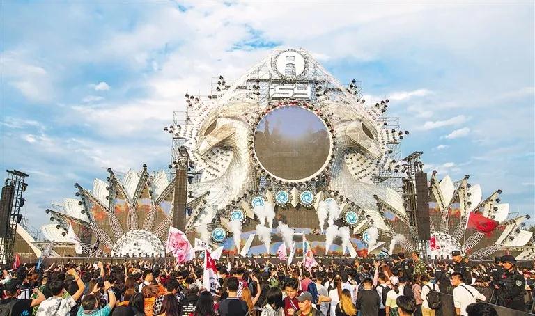 ↑12月30日,第二屆三亞國際音樂節海棠灣主會場開演,電子音樂引爆現場,嗨翻全場。武威 攝