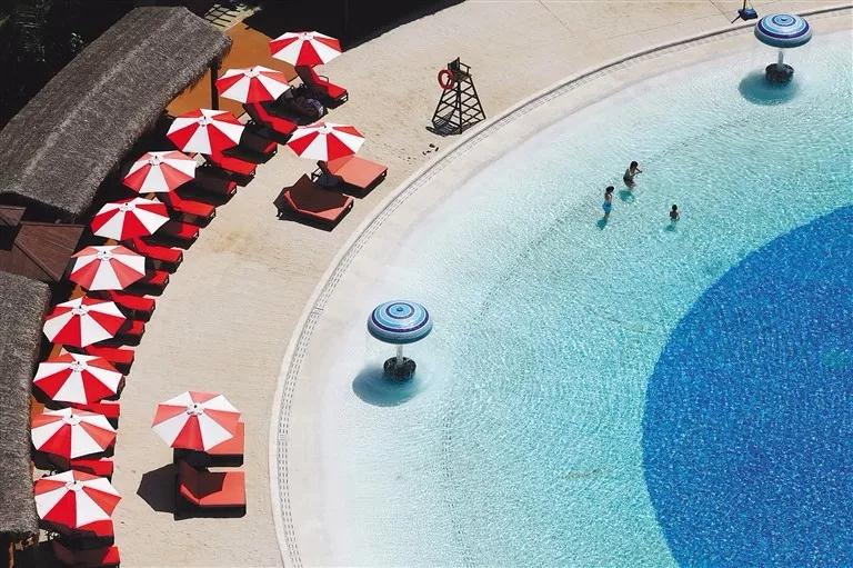↑海口一酒店泳池。 記者 張茂 攝