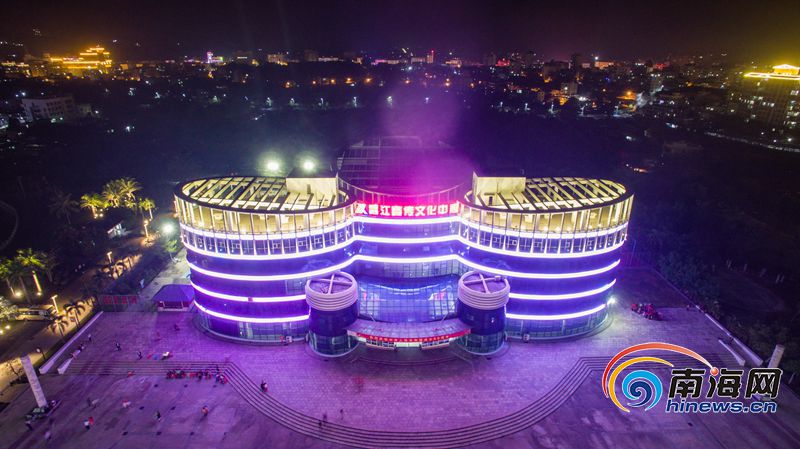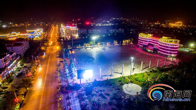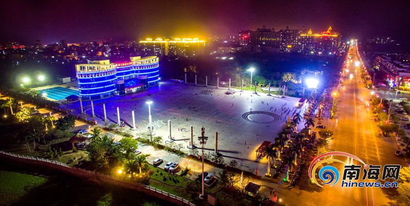南海網、南海網客戶端海口1月10日消息(海報全媒體中心記者 陳元才 通訊員 李德乾)1月9日晚,昌江黎族自治縣文化公園里燈火通明。2018年,昌江縣對文化公園周邊的縣文化宣傳中心大樓、市民廣場等,實施了亮化升級改造工程,使得昌江夜景更加美麗迷人。