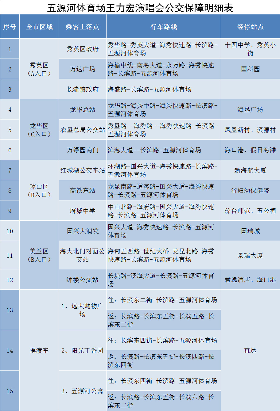 附:五源河體育場(chǎng)王力宏演唱會(huì)公交保障明細(xì)表