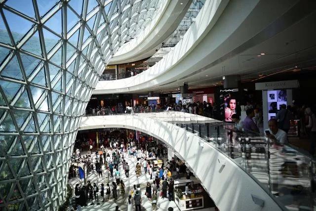 ↑顧客在海南三亞國際免稅城內游覽、購物(2018年2月18日攝)。新華社記者 郭程 攝