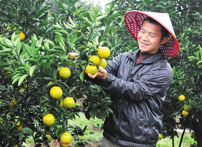澄邁縣福山鎮侯臣村福橙果園里的福橙長勢喜人。 通訊員 王家專 攝