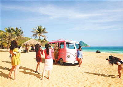 “在這里隨便一拍就是一張大片,不需要濾鏡,我太喜歡這里了。”日前,游客張美子與朋友來海南度假,呆呆島拍照是她們的計劃行程之一。“我是通過‘小紅書’ APP認識呆呆島,它現在是網紅地,很多人專門來這拍照打卡。”張美子說。