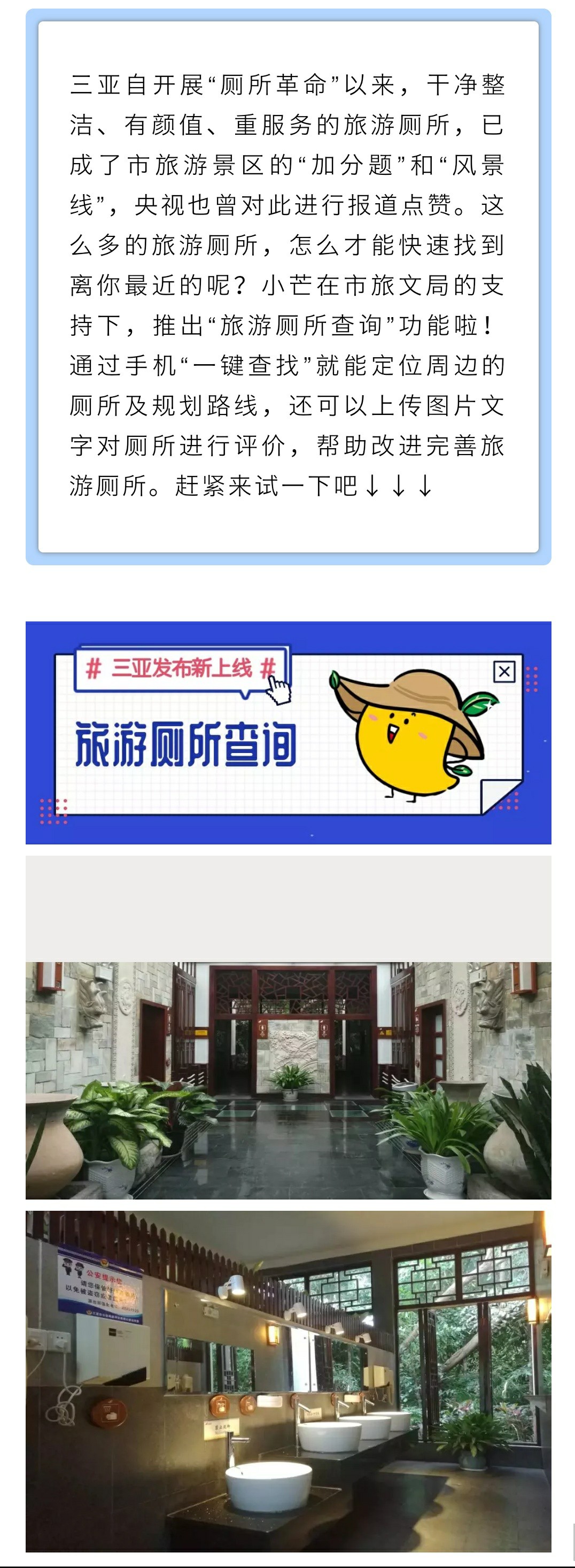 首頁 > 實用!三亞發布新增“旅游廁所查詢”功能
