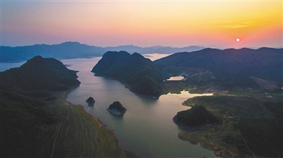夕陽余暉映照著大廣壩水庫。 海南日報記者 蘇曉杰 攝