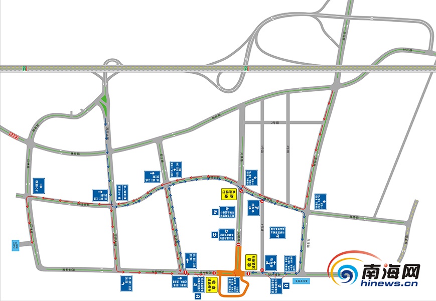 2019年度第五賽季國際汽聯(lián)電動方程式錦標(biāo)賽三亞分站賽活動期間,由于海棠北路作為比賽賽道管制,造成海棠北路由北向南方向道路中斷,交警部門根據(jù)道路路網(wǎng)實際,實行以下引導(dǎo)通行措施: