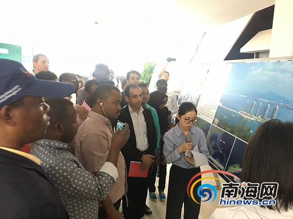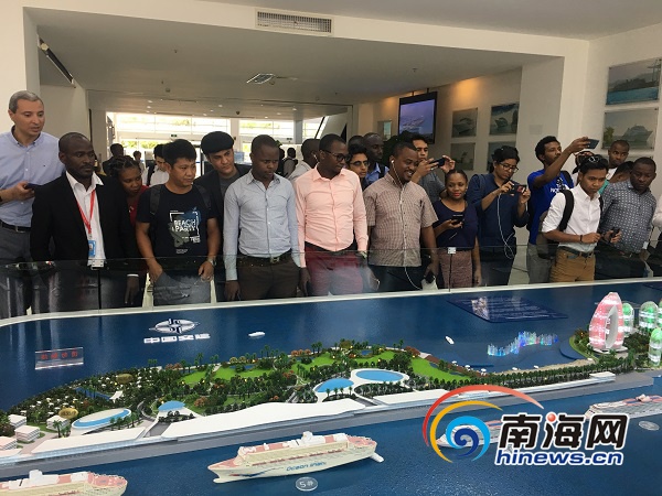 亞非49國主流媒體團在三亞鳳凰島國際郵輪碼頭參觀采訪。南海網記者 胥圣蘭 攝
