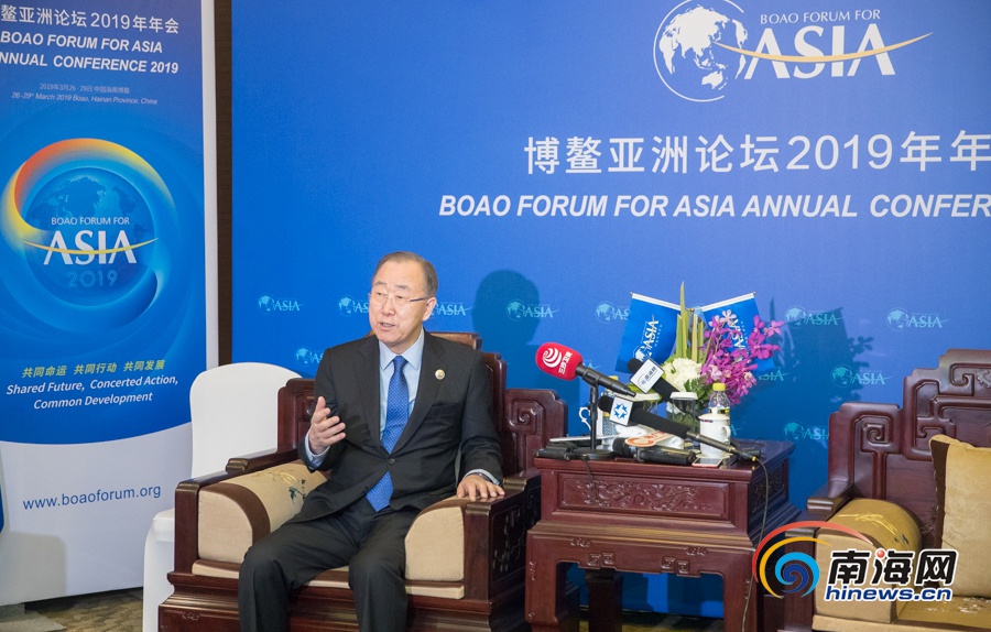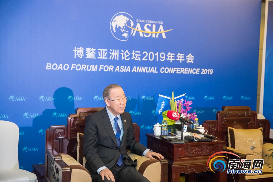 博鰲亞洲論壇理事長(zhǎng)潘基文接受媒體采訪。南海網(wǎng)記者 劉洋攝