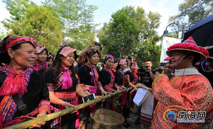 “‘搶親’環節最熱鬧,女生竭盡全力地去搶新郎,大家都在歡聲笑語中度過,這趟來得值?!眮碜匀f寧的陳女士說,瓊中景色美空氣好,還能體驗到民族文化。