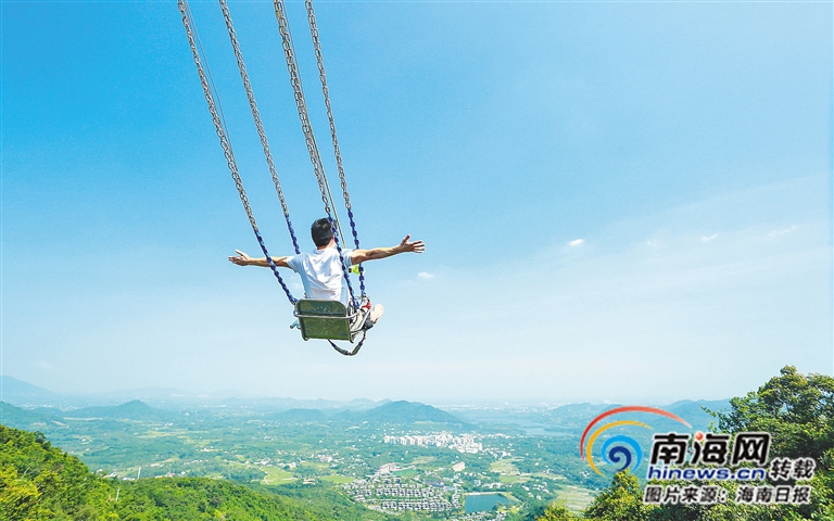 ?  游客在呀諾達雨林文化旅游區體驗懸崖秋千項目。本報記者 武威 通訊員 胡立前 攝