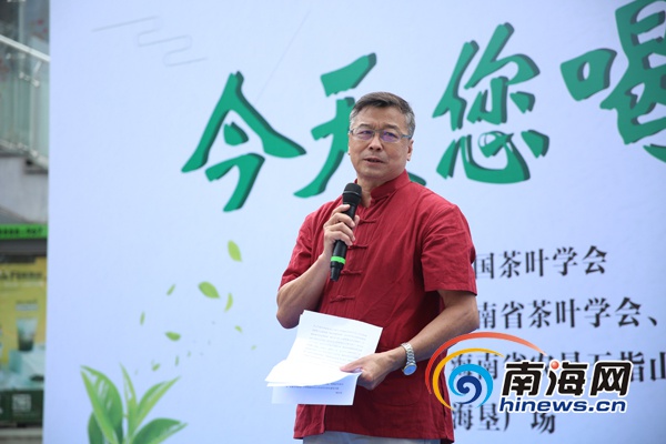 海南省茶葉學會會長蔡錦源介紹活動情況。南海網記者 陳麗娜 攝