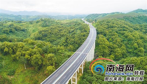 從一片“綠色”中穿過的中線高速。海南日報記者 張杰 通訊員 張璐 攝