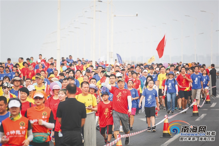 “今天我們沿著活動路線慢慢走下來,在健步中細細體驗了一把當地風情。”專門從廣東省中山市來參加健步活動的王睿宇興奮地表示,沿途的椰風海韻,令人心曠神怡,在大橋上欣賞了南渡江兩岸風光,“吹著江風讓全身心都得到了放松”。