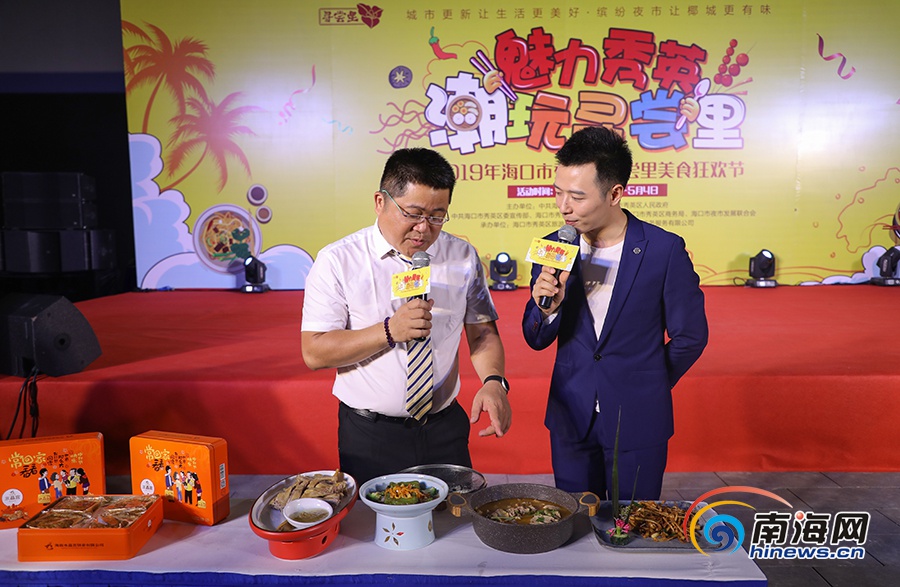 尋嘗里夜市美食店老板推介自家特色美食。南海網記者 李昊 攝