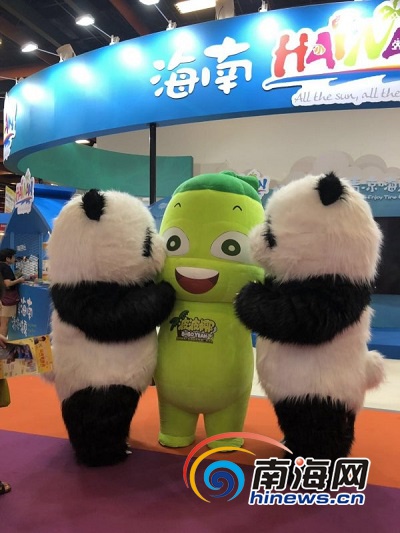 海南旅游文化推廣吉祥物波波椰與美麗中國吉祥物。省旅文廳供圖