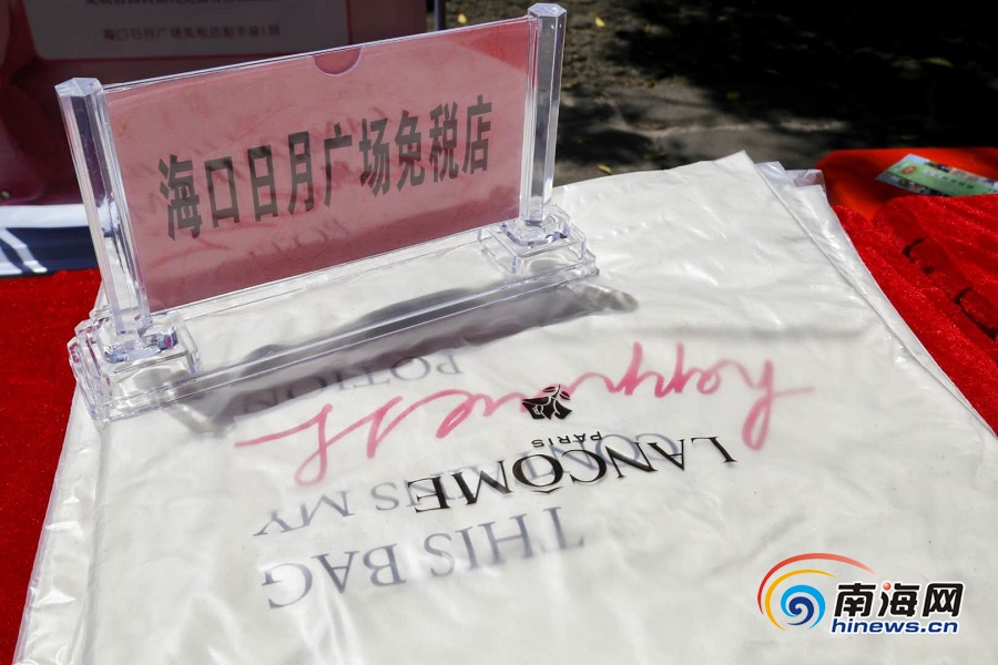 海口日月廣場免稅店現場掃描贈送購物袋等豐富禮品。南海網記者 姚皓 攝