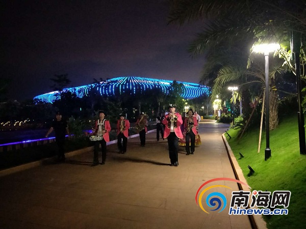椰城仲夏,越夜越精彩,觀瀾湖華誼馮小剛電影公社舉行的篝火晚會吸引了不少市民、游客赴景區“打卡”。在充滿韻律的動感節奏中,來自五湖四海的游客們圍著篝火,把酒言歡話家常,在工作人員的帶領下,游客們還圍著篝火邊唱邊跳,在星空下享受海島夏夜之美。