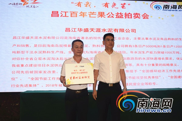 “芒果樹王的微笑”的百年芒果禮盒被昌江華盛天涯水泥有限公司競拍成功。南海網(wǎng)記者 劉麗萍 攝