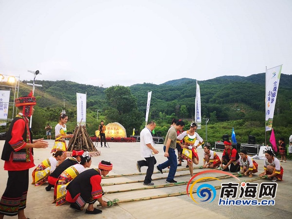 活動現場熱鬧非凡,黎族的阿妹、阿哥穿著獨具特色的民族服飾,在歡快的節奏下,熱情地邀請嘉賓及游客體驗竹竿舞,濃郁的節日氣氛感染了不少圍觀村民駐足拍照?!熬镁貌灰娋镁靡?,久久見了更想見”,在蜿蜒的河道上,黎家阿哥、阿妹劃著竹筏縱情高歌,將黎族村寨的美麗故事唱出來,傳遞著樂東人對生活的美好愿景。