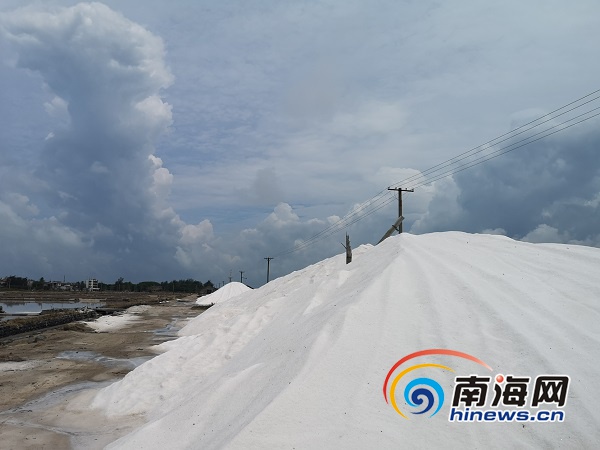 鶯歌海鹽場(chǎng)的鹽堆成“銀山”。南海網(wǎng)記者 蘇靚 攝