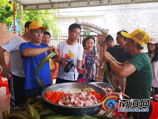 樂東不僅有“銀山”,還有包裝獨(dú)特的粽子。卷粽葉、加餡料、綁細(xì)線、包粽子……在鶯歌海鎮(zhèn),村民們?cè)跒榧磳⑴e辦的媽祖文化節(jié)準(zhǔn)備1000個(gè)粽子,讓游客提前感受端午佳節(jié)之樂。與常見的粽子不同,樂東的粽子是用菠蘿葉捆成長條,粽子里有瑤柱、蜜豆、蛋黃和肥瘦相間的豬肉,食材豐富令人垂涎三尺。