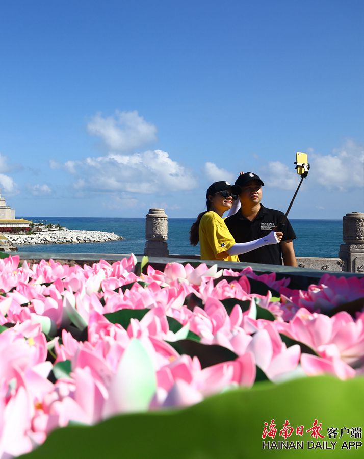6月8日,一情侶在三亞南山景區(qū)游覽、自拍。 據(jù)海南日報客戶端|記者 袁琛 特約記者 陳文武 攝影報道