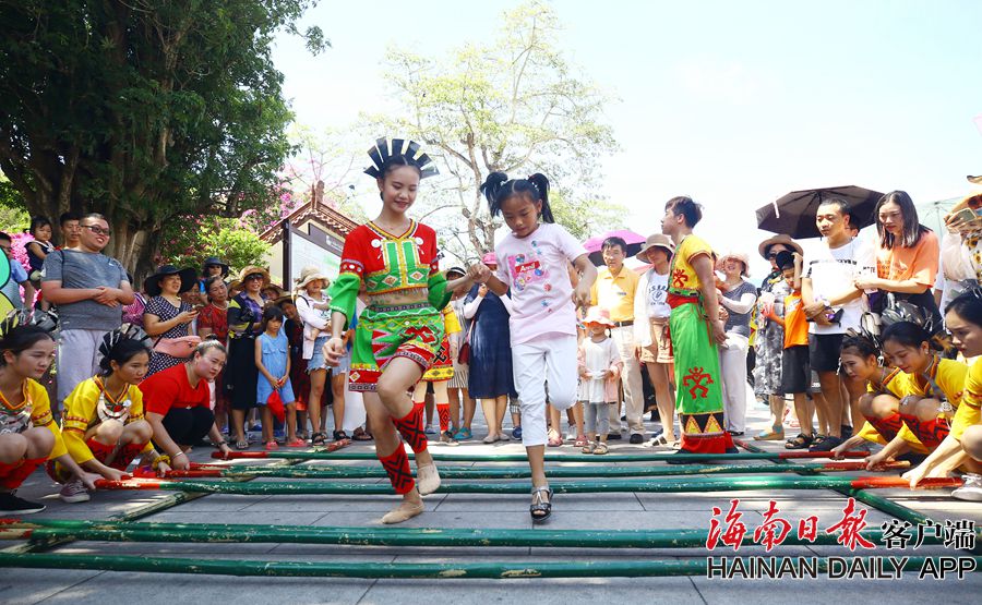 游客在三亞市南山文化旅游區(qū)跳竹竿舞。 據(jù)海南日報客戶端|記者 袁琛 特約記者 陳文武 攝影報道