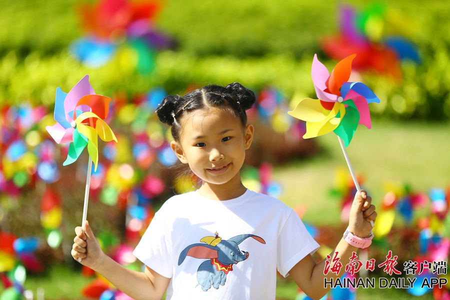 6月8日,小朋友在三亞市南山景區(qū)“風(fēng)車谷”游覽。 據(jù)海南日報客戶端|記者 袁琛 特約記者 陳文武 攝影報道