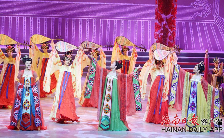 據了解,該劇回溯中華文化的根本,以“中國”一詞最早出現的西周何尊銘文為舞臺視覺形象,以歷史上最為鼎盛繁榮的朝代為創作背景,從周、秦、漢、唐的歷代禮儀風范、國韻奇珍中萃取藝術靈感。海南日報記者張茂 攝影報道