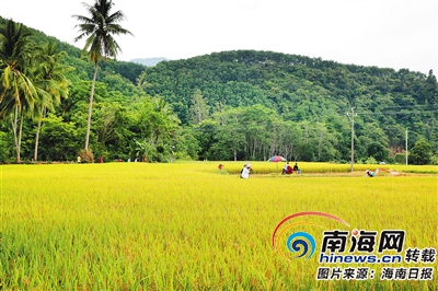 1932年8月14日,史圖博沿著大岐河谷到達荷樂村(現為洪水村),村民熱情地歡迎他們到來。由于很少接觸外人,村民幾乎不主動跟他們交流。當時居住在大山之中的村民很窮,加上遇到夏旱,村子沒有剩余大米,也沒有其他東西賣給他們,史圖博一行只能啃吃玉米充饑。當時荷樂村只有十多戶人家,居住在山腳下的茅草屋里。現在村里的茅草屋還保留著,作為文化保護點。村內種有許多花梨和椰子樹,村前有一片田地,這片金黃色的田地跟遠處的高山形成了油畫般的風景,史圖博在《海南島民族志》里記錄下了這美麗的風光。