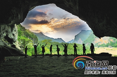 走讀團隊隊員進入史圖博曾經考察過的皇帝洞,站在洞口觀賞南堯河風光。 清風 攝