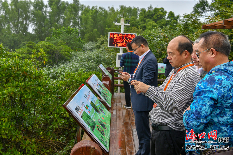 常年有大量的人們到東寨港紅樹林保護區(qū)深深呼吸新鮮空氣,保護區(qū)安裝有多個空氣監(jiān)測裝置實時顯示負氧離子濃度。記者 李天平 攝