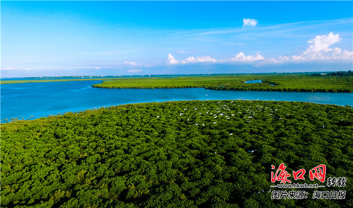 美麗的東寨港紅樹林,為鳥類提供了理想的棲息場所。 見習記者 陳長宇 通訊員 馮爾輝 攝