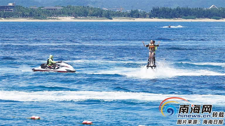游客在蜈支洲島體驗“水上飛龍”項目。 海南日報記者 武威 攝