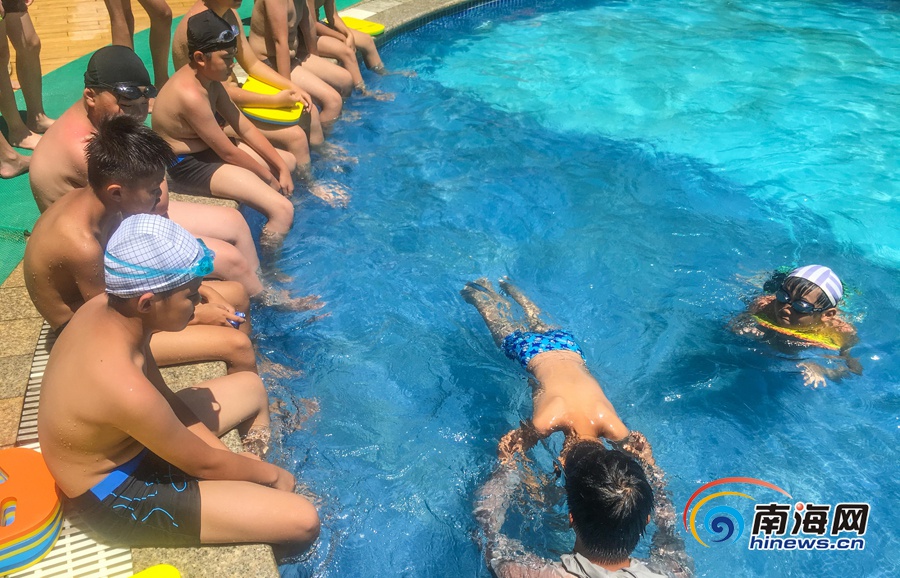 海南旅游頭條、南海網(wǎng)、南海網(wǎng)客戶端海口6月24日消息(海報(bào)集團(tuán)全媒體中心記者 張茂)近日,在海口市瓊山區(qū)一小區(qū)游泳池,教練在教孩子學(xué)習(xí)游泳。在持續(xù)的高溫天氣下,既可消暑、又能學(xué)習(xí)一技之長(zhǎng)的游泳運(yùn)動(dòng)成了椰城孩子們的選擇。