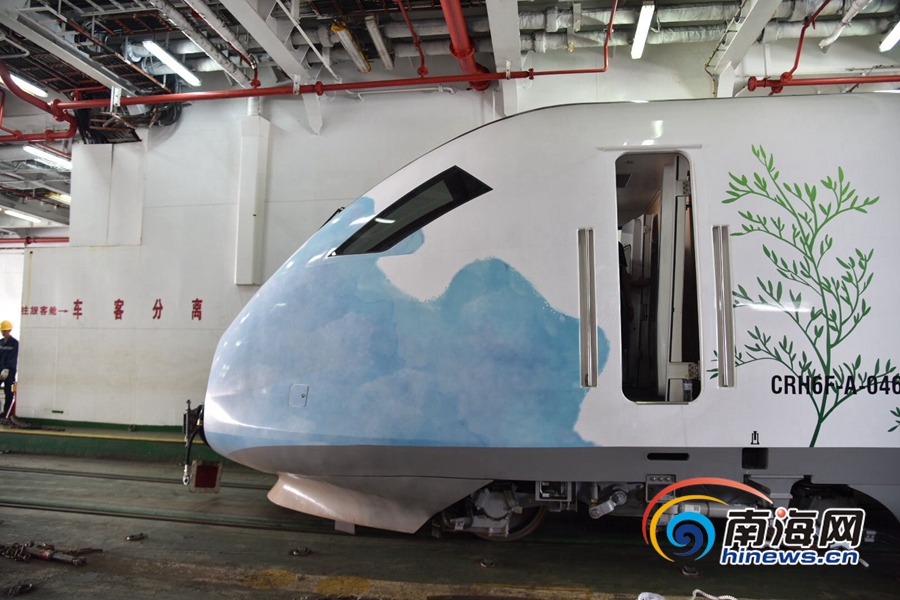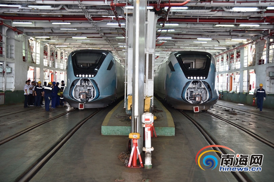 今天陸續抵達海口的四列市郊列車分別為木棉花號、蜂虎鳥號、白鵜鶘號和水蕨菜號。市郊列車渡過瓊州海峽,駛入海南鐵路南港,約40分鐘之后抵達海口火車站,完成歷史性的交接。